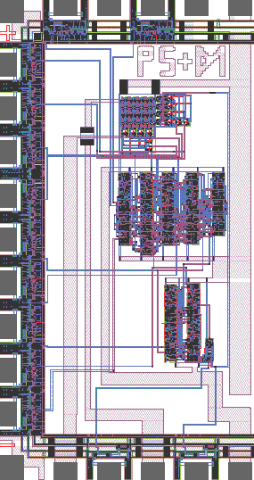 The DAC (the top block) is essencially a digitally-controlled potentiometer whose ends connect to two input pins for the control voltage. The DAC was drawn in manually using transmission gates (two transistors back to back) to make cells, then the cells were assembled together to make up a 4x4 grid. Logic decoders attached to the sides figured out which row and column to activate, essencially picking off one of 16 points along a long resistive strip of polysilicon. The finite state machine (the middle block) controls the circuit using a successive-approximation algorithm. It compares the input analog voltage to the digitally-controlled DAC output, one bit at a time until the most acurate of the 16 distict values is reached. It then outputs a "ready" signal to let the external equipment know when the digital output is correct. Implementation of this portion included coding in Verilog, simulating (testing the code), synthesizing (tranlating into logic cells), then testing again. The resulting block of cells, wired up to the other components and external pin pads, produced the final layout which could be tested yet again, before being sent off to be fabricated, two designs per one MOSIS tinychip. When the physical chips arrived, they were tested for functionality, and found to be in fully working condition. For more detail, view the final technical memo and the testing document (including the test data) or browse through the code, of which the most interesting would likely be the successive-approximation register finite state machine code . Peter Susi and I worked as partners to develop this project. |